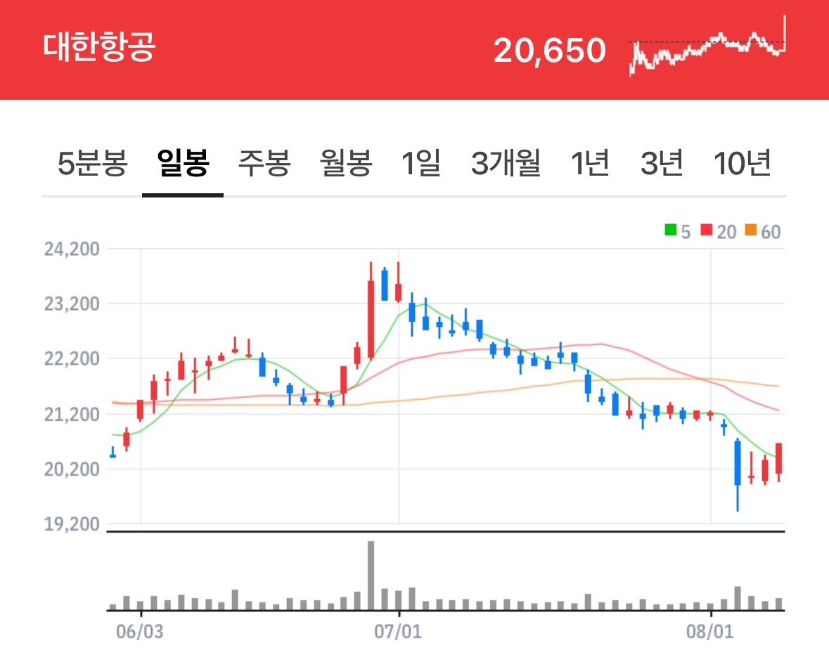그러나 아시아나항공과의 합병 및 항공 화물 운임 상승 등의 긍정적인 요인들이 주가에 긍정적인 영향을 미칠 것으로 기대됩니다.