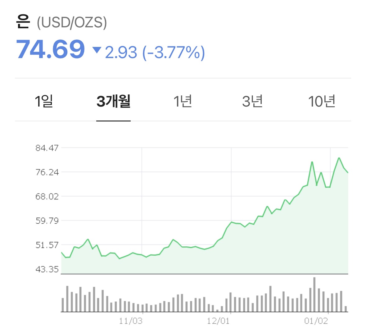 • 현재 은값은 금의 60분의 1 수준
